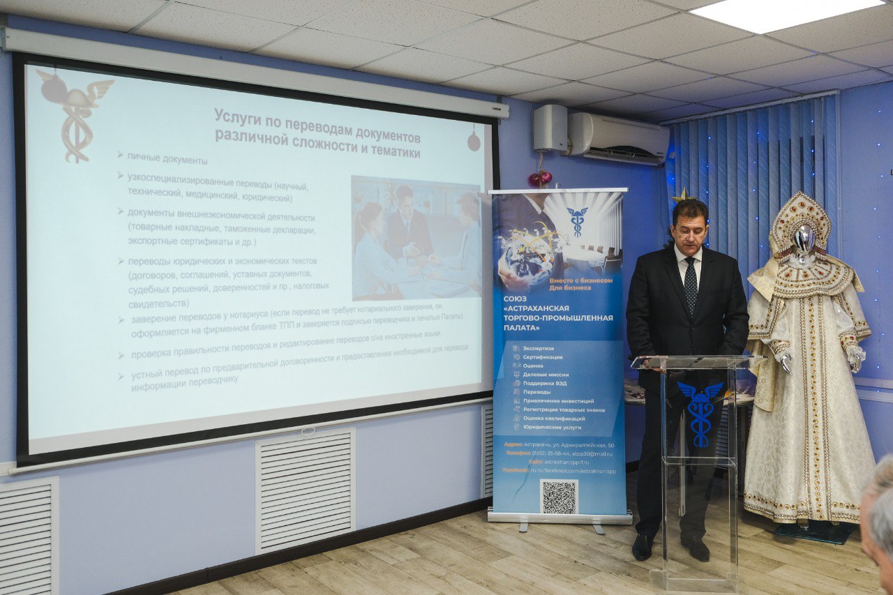 Speakers at the meeting included Mikhail Kabakov, First Deputy Minister of Industry, Trade and Energy of Astrakhan region, Eduard Burdonov, Deputy Head of the Astrakhan City Municipality, Alexander Solovyov, Commissioner for the Protection of Entrepreneurs' Rights in the Astrakhan Region, Sergey Vostrikov, Adviser to the Manager of the additional office in Astrakhan of MB BANK JSC, Raisa Beresten, entrepreneur and others They highly appreciated the work of the Astrakhan Chamber of Commerce and Industry, including in the international area.